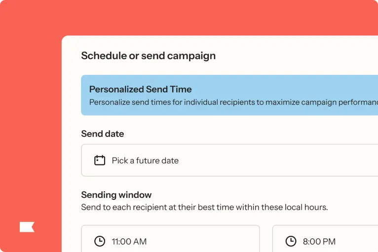 Personalized send time uses AI for send time optimization, delivering messages when each shopper is most likely to engage, click, and convert.