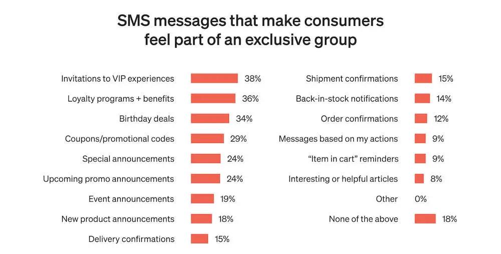 Importantly: About 20% of current SMS subscribers say the texts they get don’t actually make them feel like they’re part of a special group. So, this area is ripe for improvement.