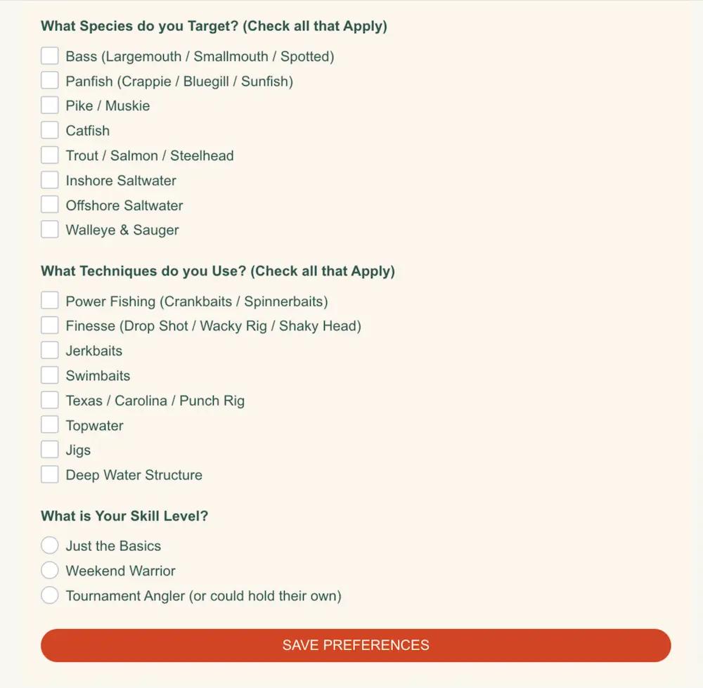When Mystery Tackle Box says they want you to “get the email you want and nothing more,” they take the opportunity to ask you even more questions about your fishing habits. The brand uses a form to ask: