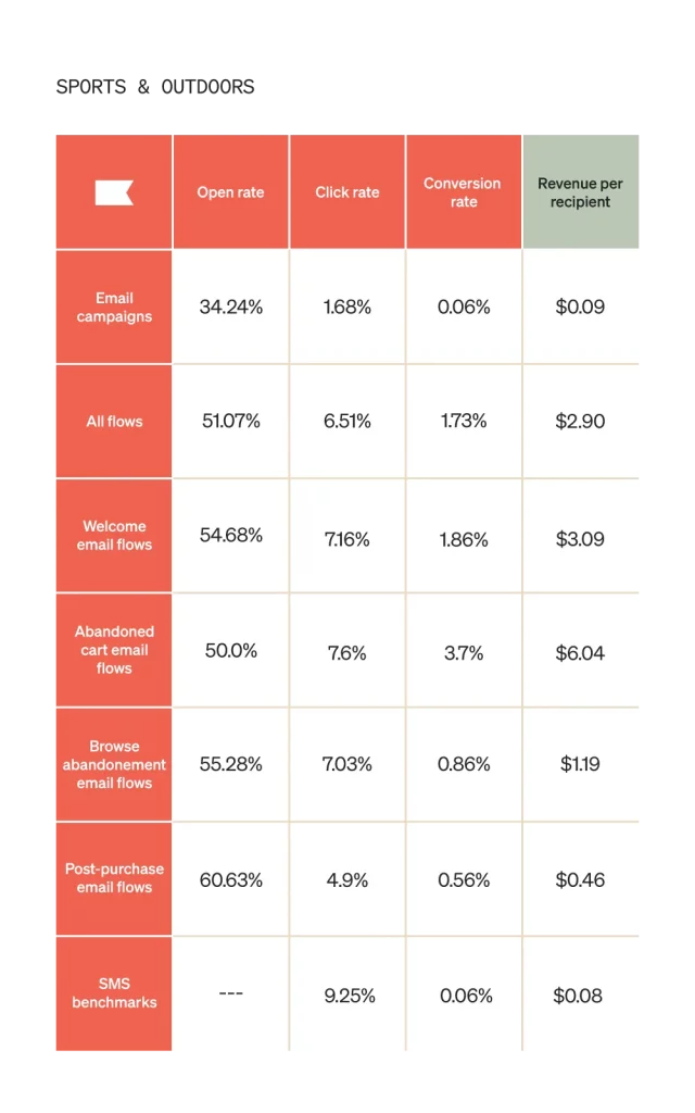 The increase in sports adoption, coupled with a social commerce boom, was exactly what the sporting goods category needed to create positive medium-term growth. We see it in our own engagement data, with nearly all email and SMS performance benchmarks exceeding average rates across all industries.