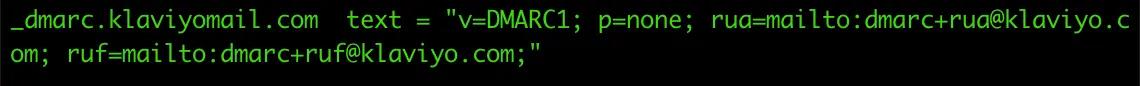 For example, if you do a TXT lookup for “_dmarc.klaviyomail.com”, you will find an entry like this: