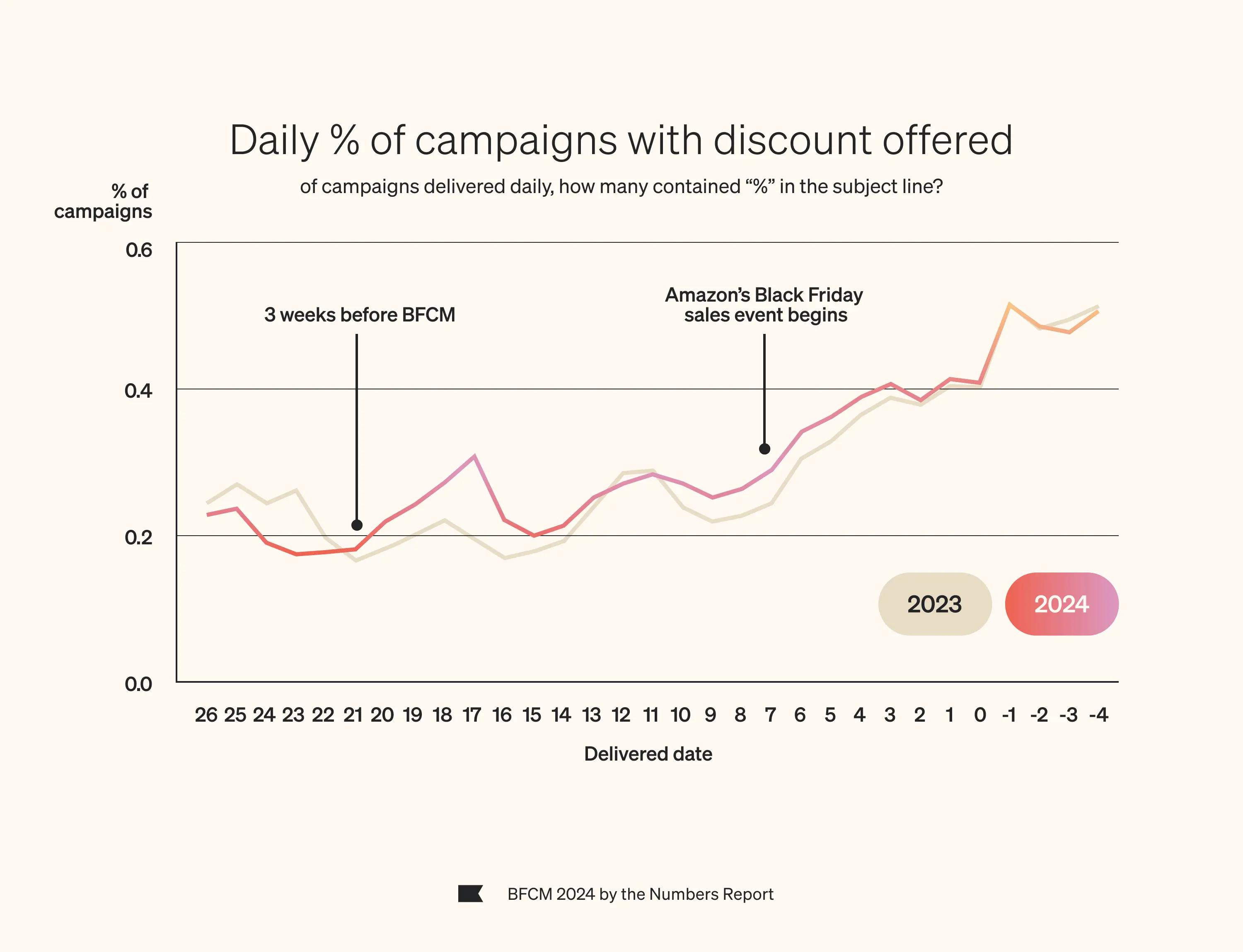 By the Monday before Thanksgiving, more than 40% of email campaigns contained discounts.