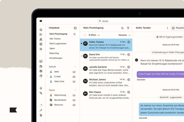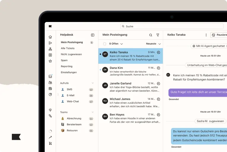 Der Klaviyo Helpdesk vereint Kundensupport über E-Mail, Chat, SMS, WhatsApp und Social Media – und bietet Support-Teams 360°-Kontext für jede Person.