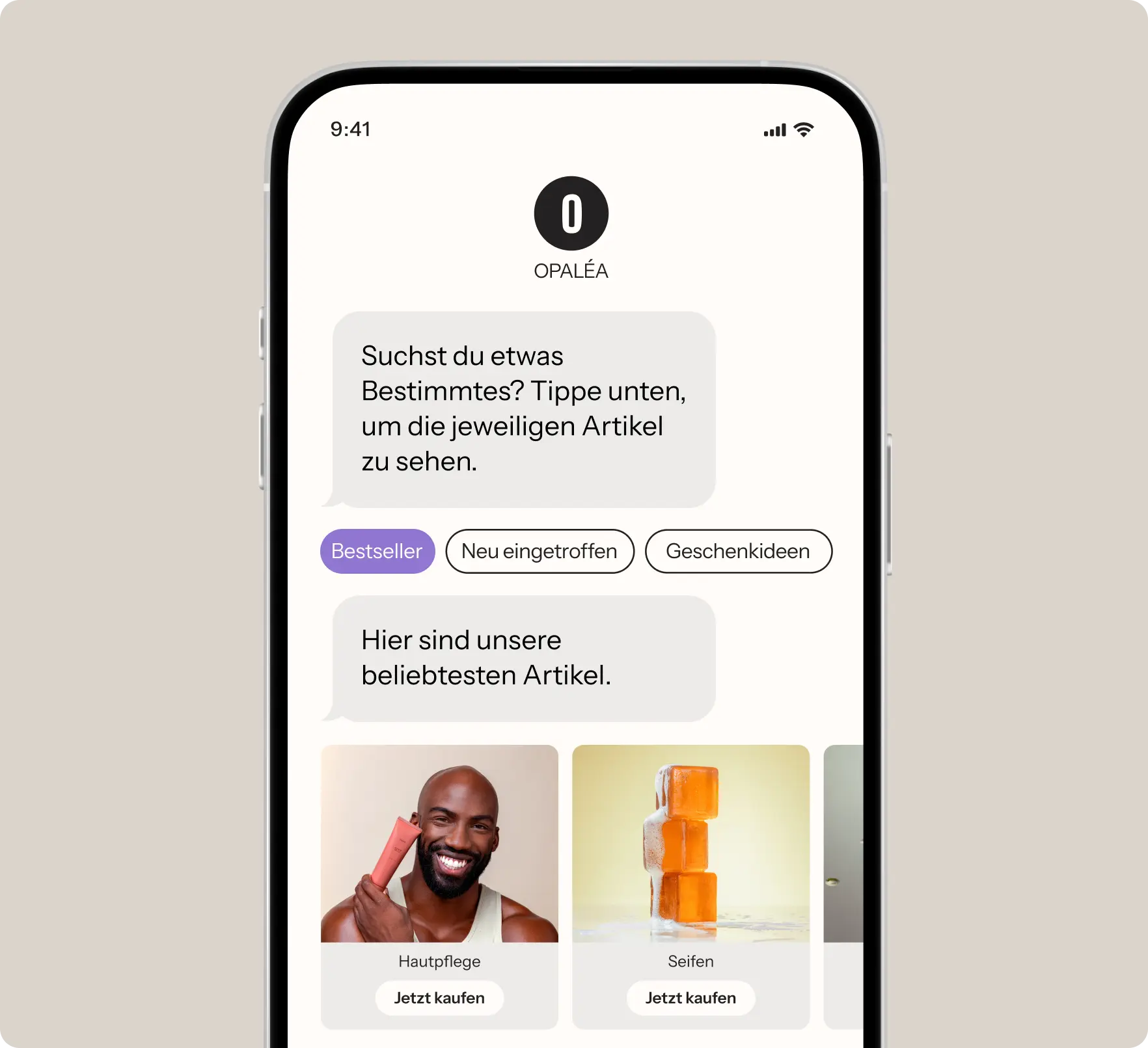 - Mit vorgeschlagenen Antworten führst du deine Kund*innen zum Kauf.
