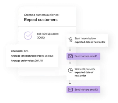Personaliza todo tipo de detalles con flujos de activación basados en fechas, eventos, comportamientos y más. Después, usa segmentos, filtros, pruebas A/B y más para segmentar y optimizar.