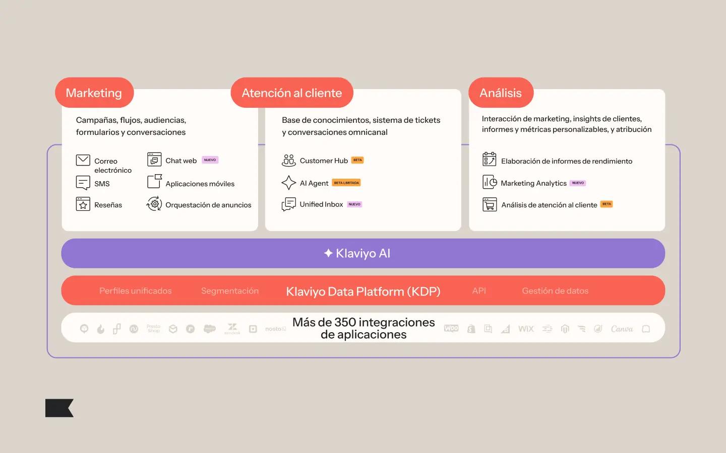 Klaviyo CRM B2C unifica marketing, atención al cliente y análisis en una plataforma. Con la tecnología de Klaviyo Data Platform y Klaviyo AI (K:AI), crear relaciones personalizadas y duraderas con los clientes es más rápido y fácil que nunca.