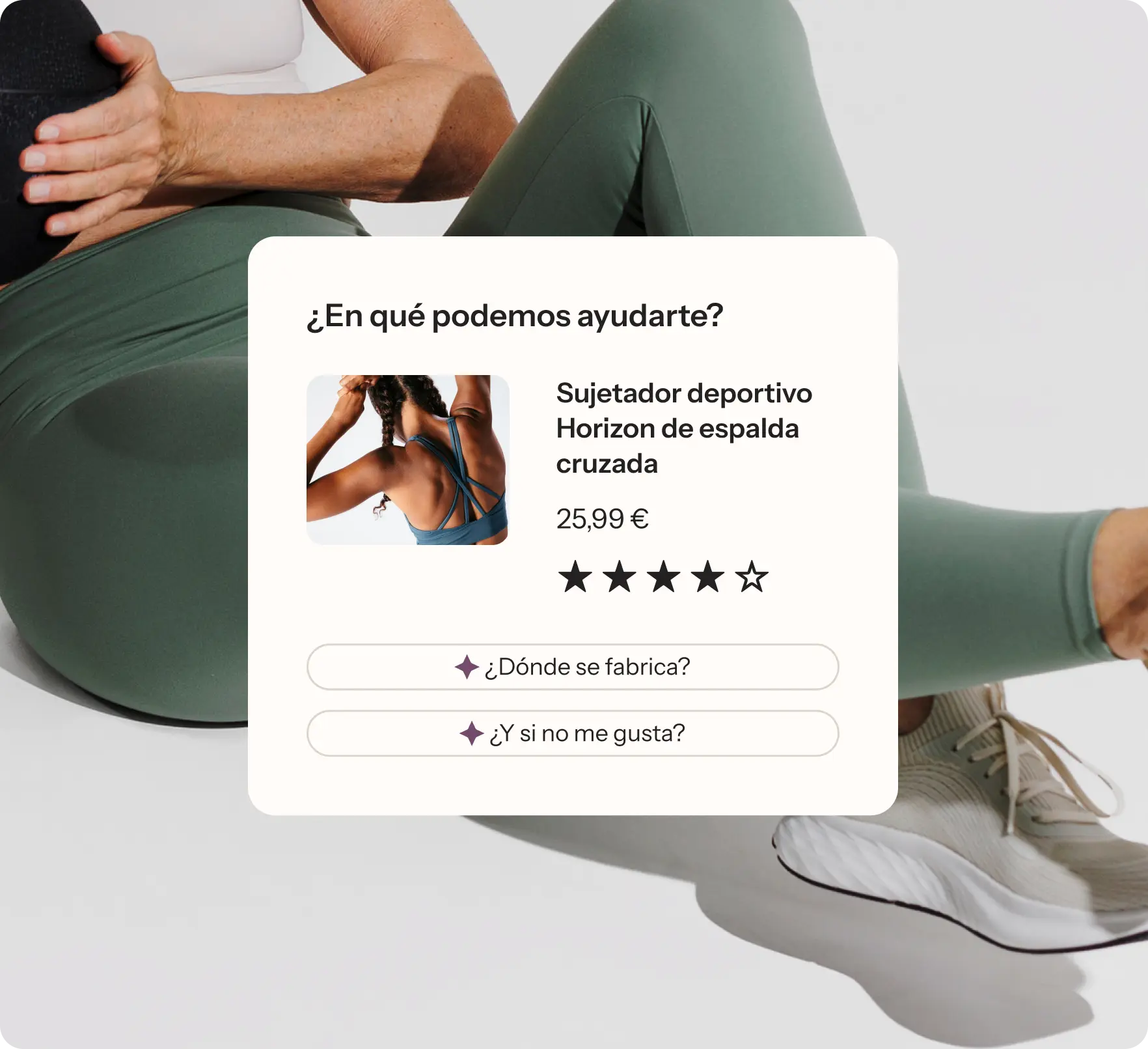 María visita tu sitio web y encuentra un sombrero amarillo canario que le encanta. Lo añade al carrito, pero no sigue con la compra y decide hacer una consulta rápida sobre el material. Se pone en contacto con el servicio de asistencia al cliente por el chat en tiempo real y, aunque obtiene una respuesta, decide esperar antes de comprar el sombrero.