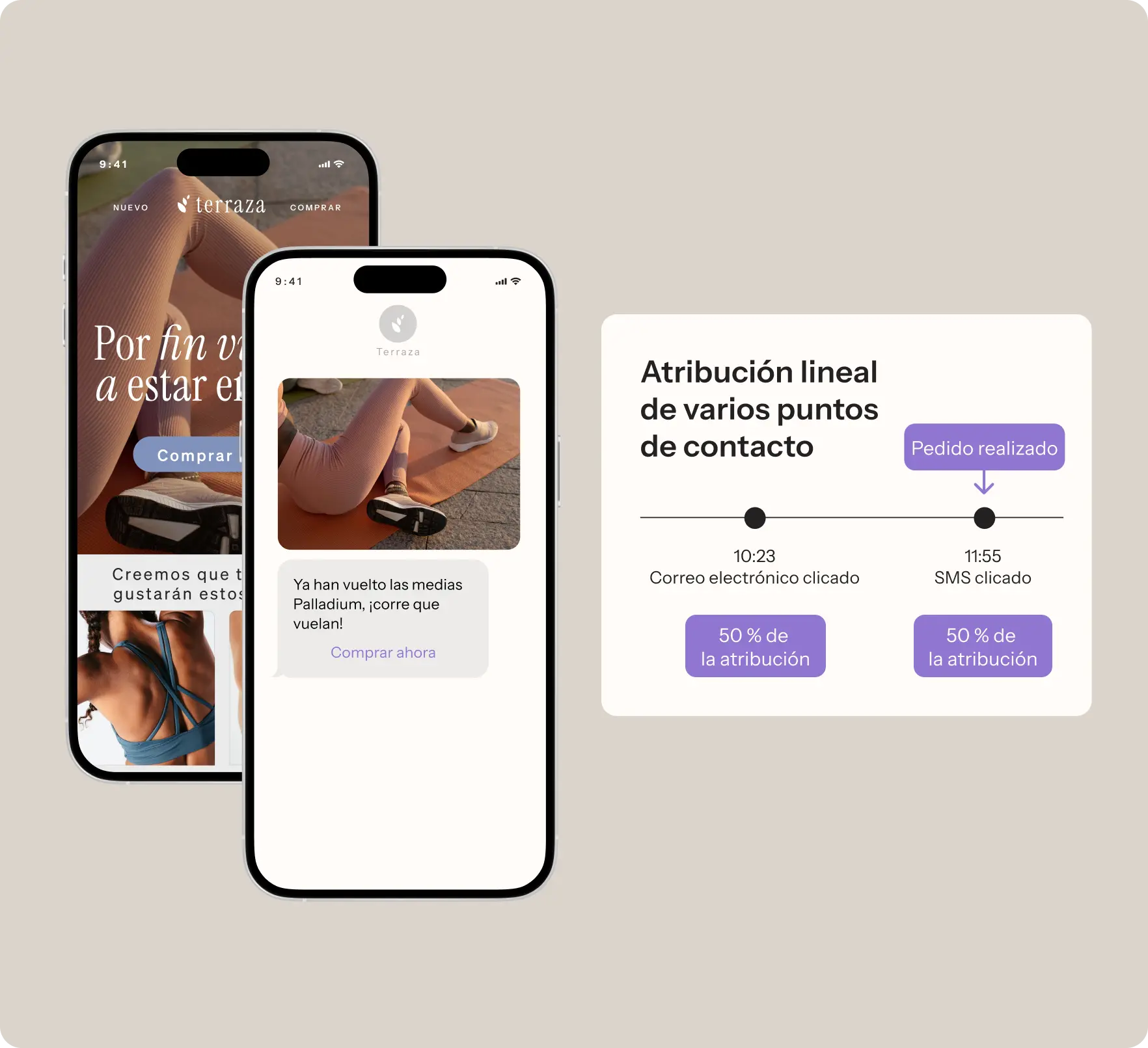 La atribución de Klaviyo refleja cómo compran realmente los clientes para que puedas conocer con detalle qué resultados generan tus acciones de marketing en los distintos momentos y canales.