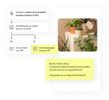 Centralizza e sfrutta il potere dei dati dei clienti. Offri una personalizzazione superiore con flussi automatizzati eseguiti in tempo reale per rivolgerti direttamente ai clienti nel momento più indicato