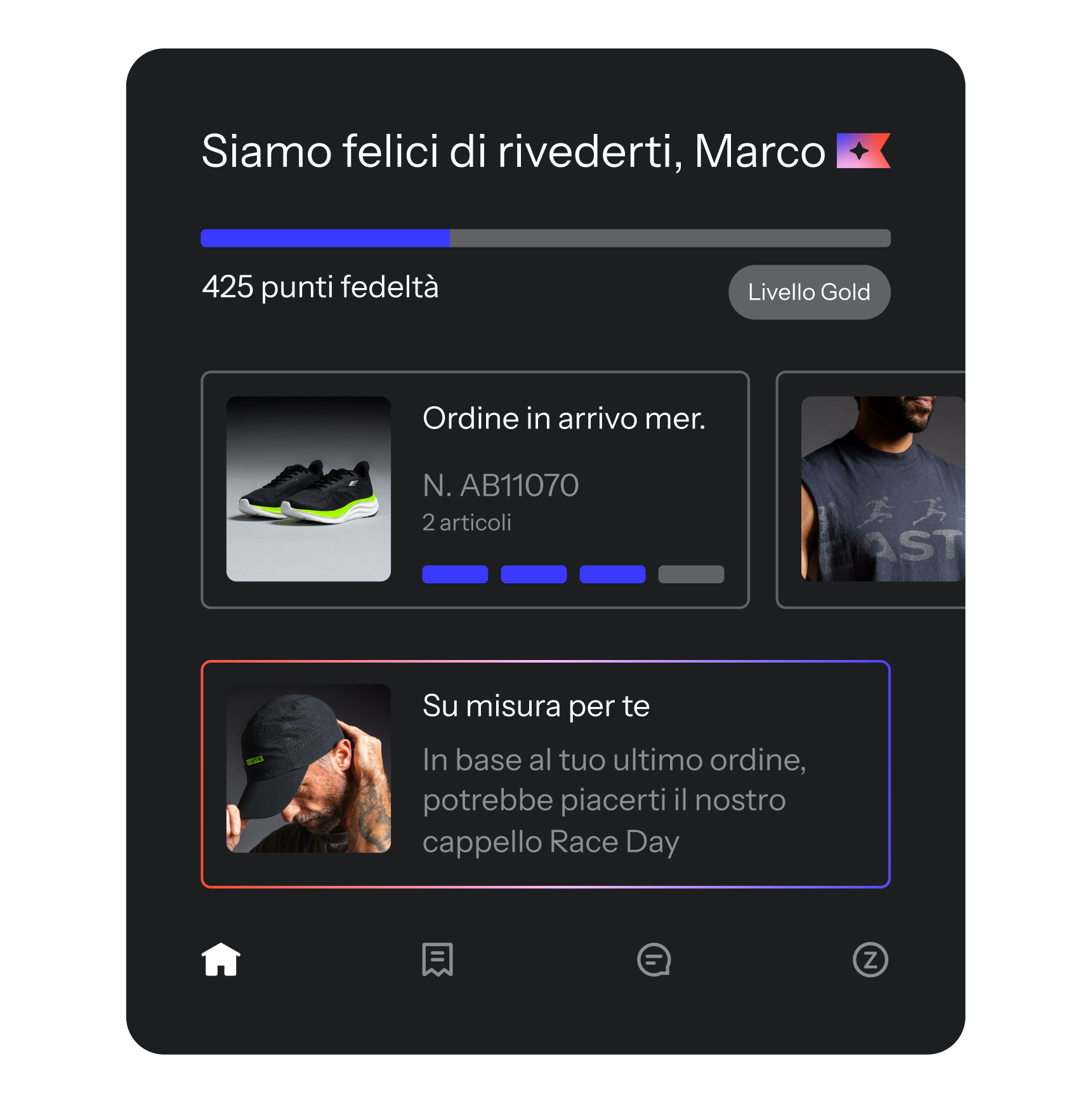 Offri a ogni cliente uno spazio personalizzato in cui poter gestire gli ordini, ricevere assistenza e scoprire prodotti pertinenti.