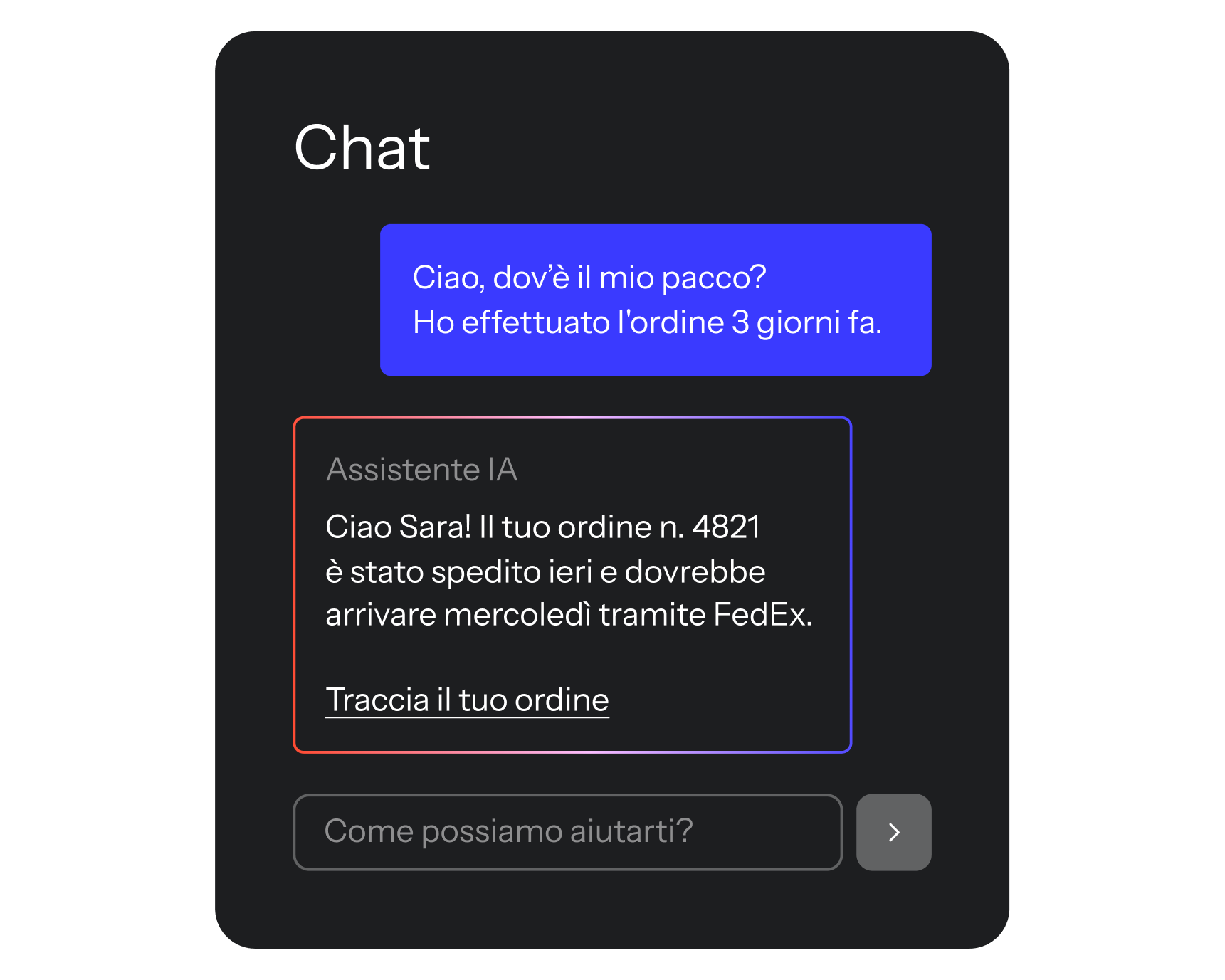 - Customer Agent interviene offrendo assistenza basata sull'IA 24/7
