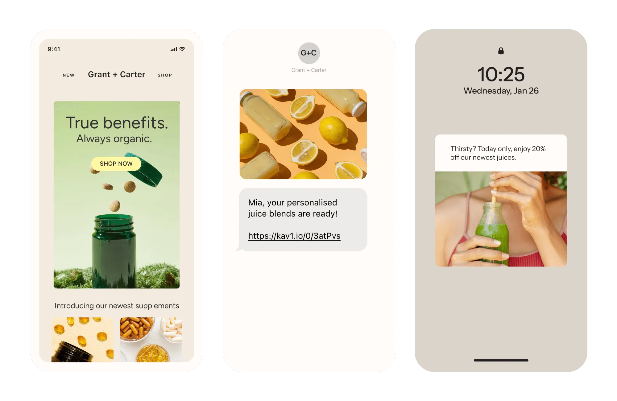 Show customers their new favorite product in their preferred channel—email, SMS, or mobile push—at the right time.
