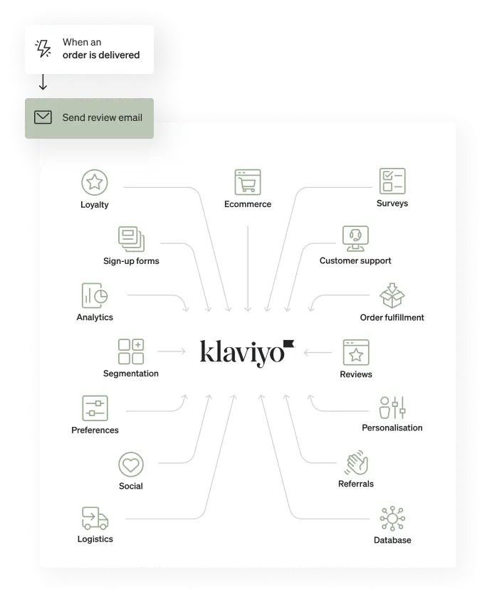 Integrate your ecommerce platform, ecosystem, and historical data with Klaviyo to send highly personalised email and SMS that drive sales.
