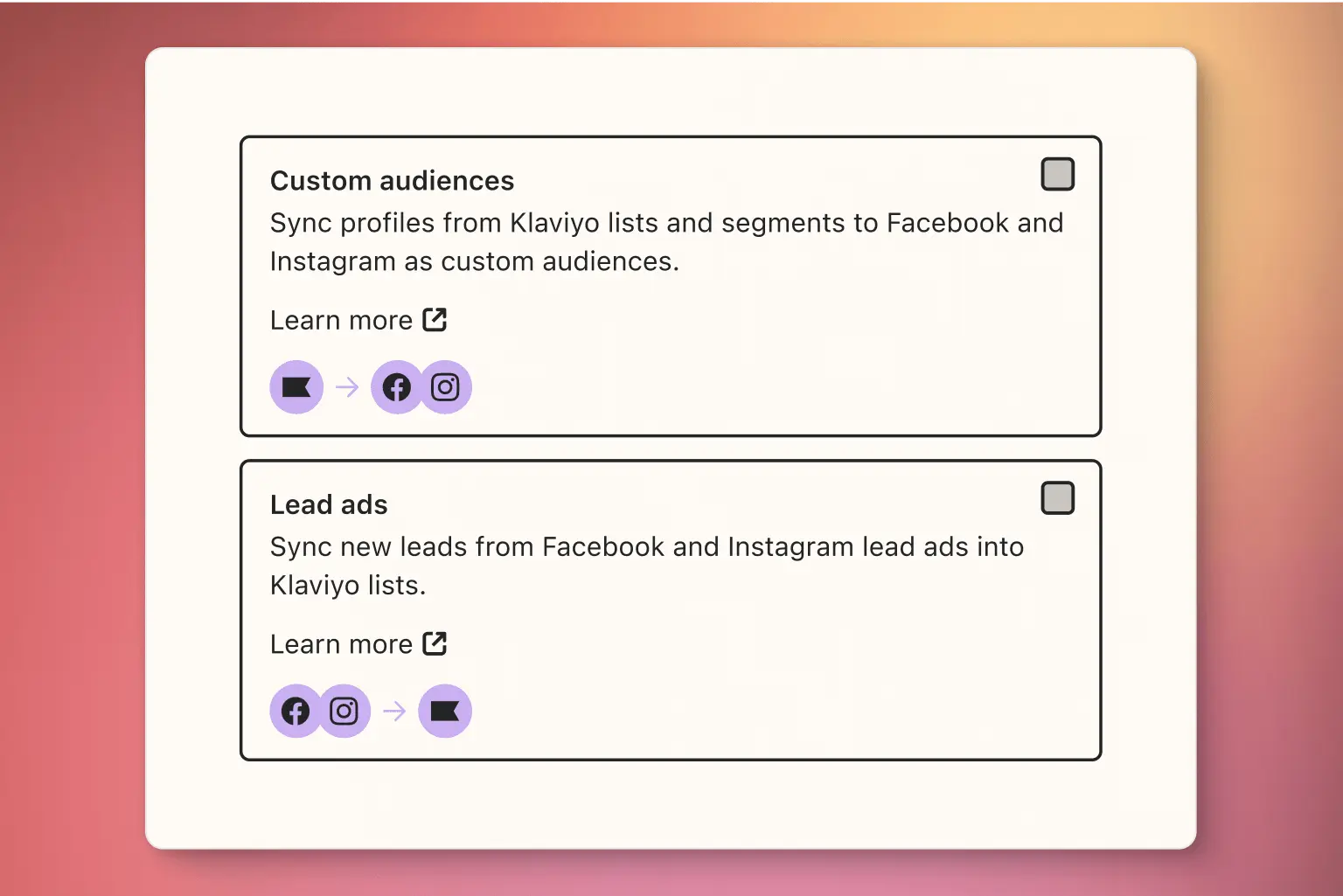 Connect Klaviyo to all your favourite platforms to create data-driven ads.