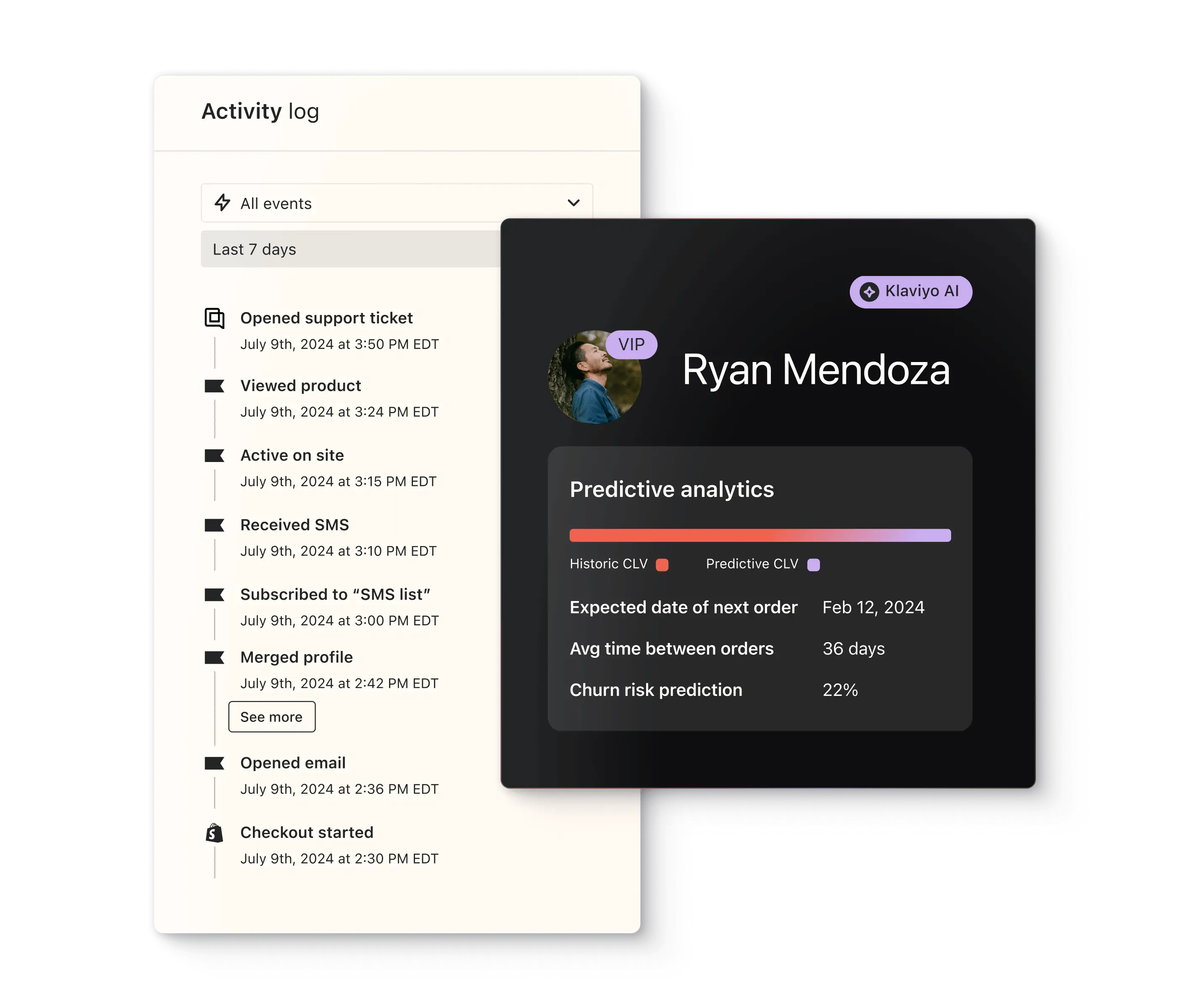 Use AI-powered insights to predict churn, lifetime value, and future purchases.