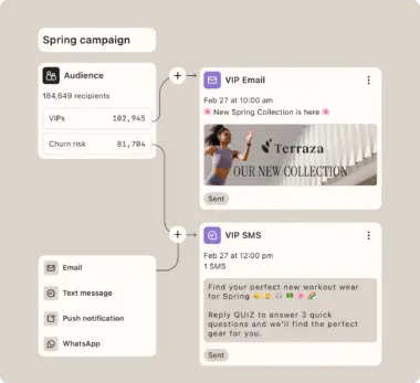 Coming soon Omnichannel campaign builder: Design multi-segment, multi-message campaigns across email, text, push, and WhatsApp from a single visual interface.